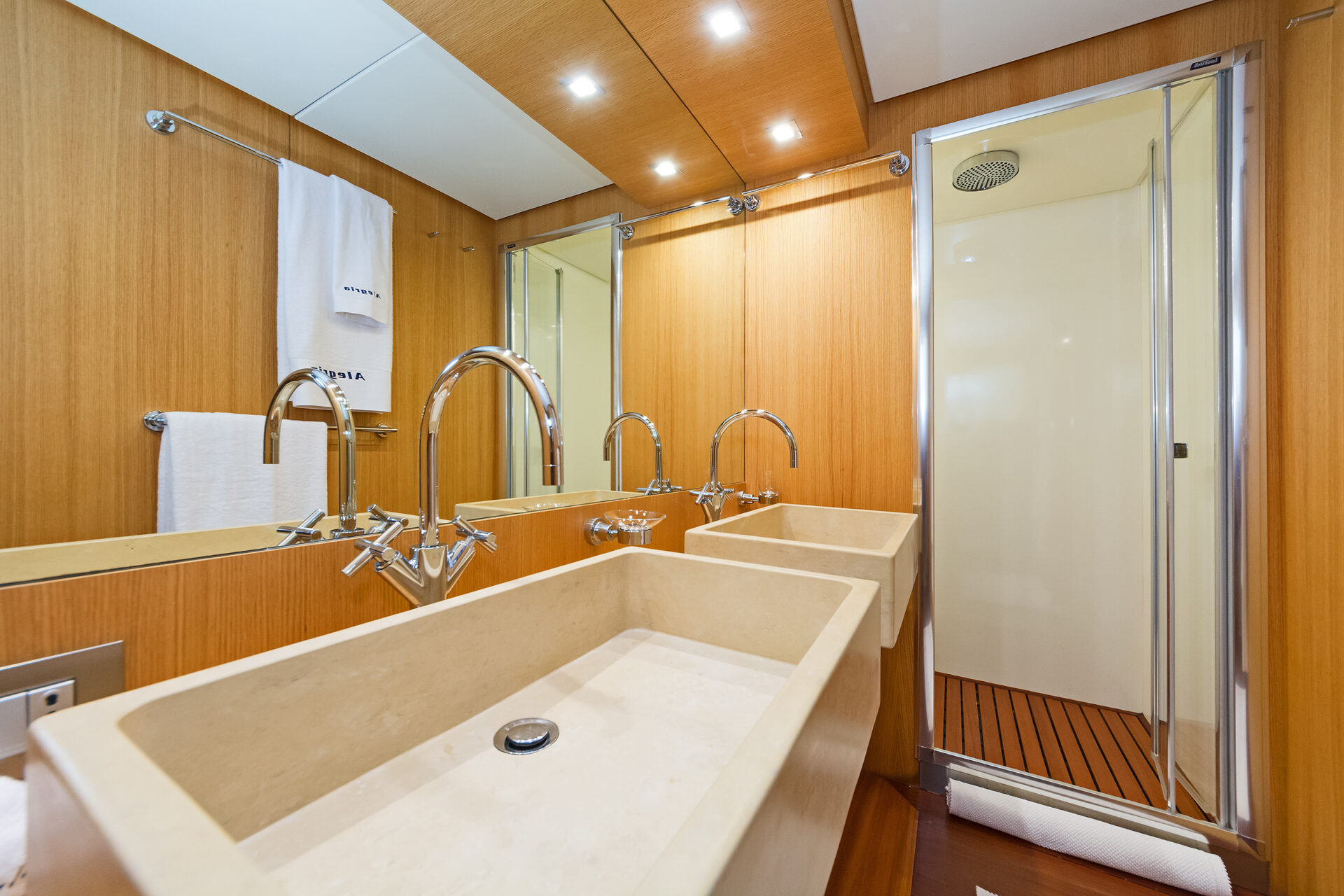 Additionally, her zero-speed stabilizers ensure exceptional comfort both at anchor and underway, providing a smooth and relaxing experience throughout the charter.