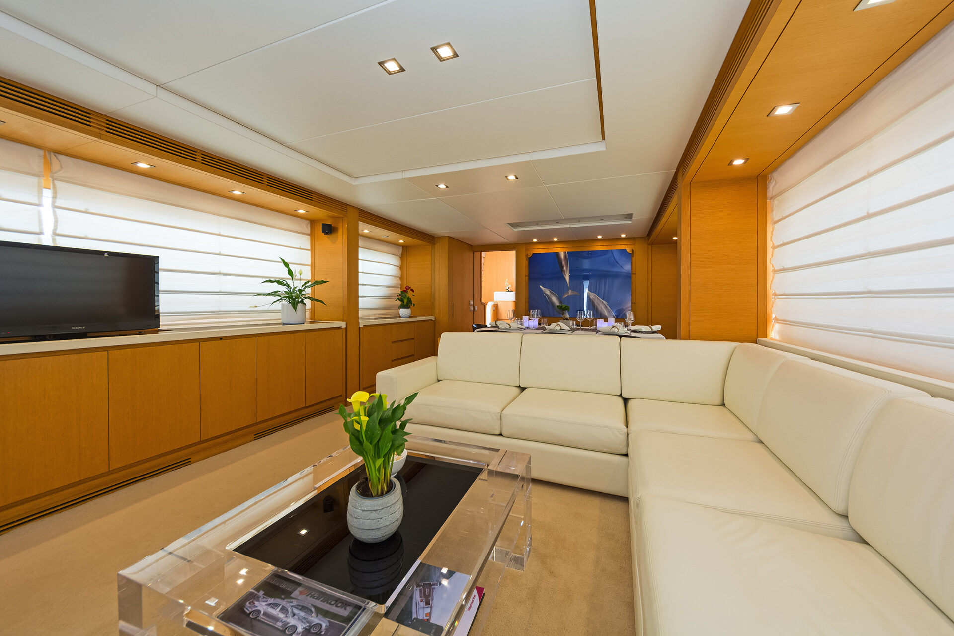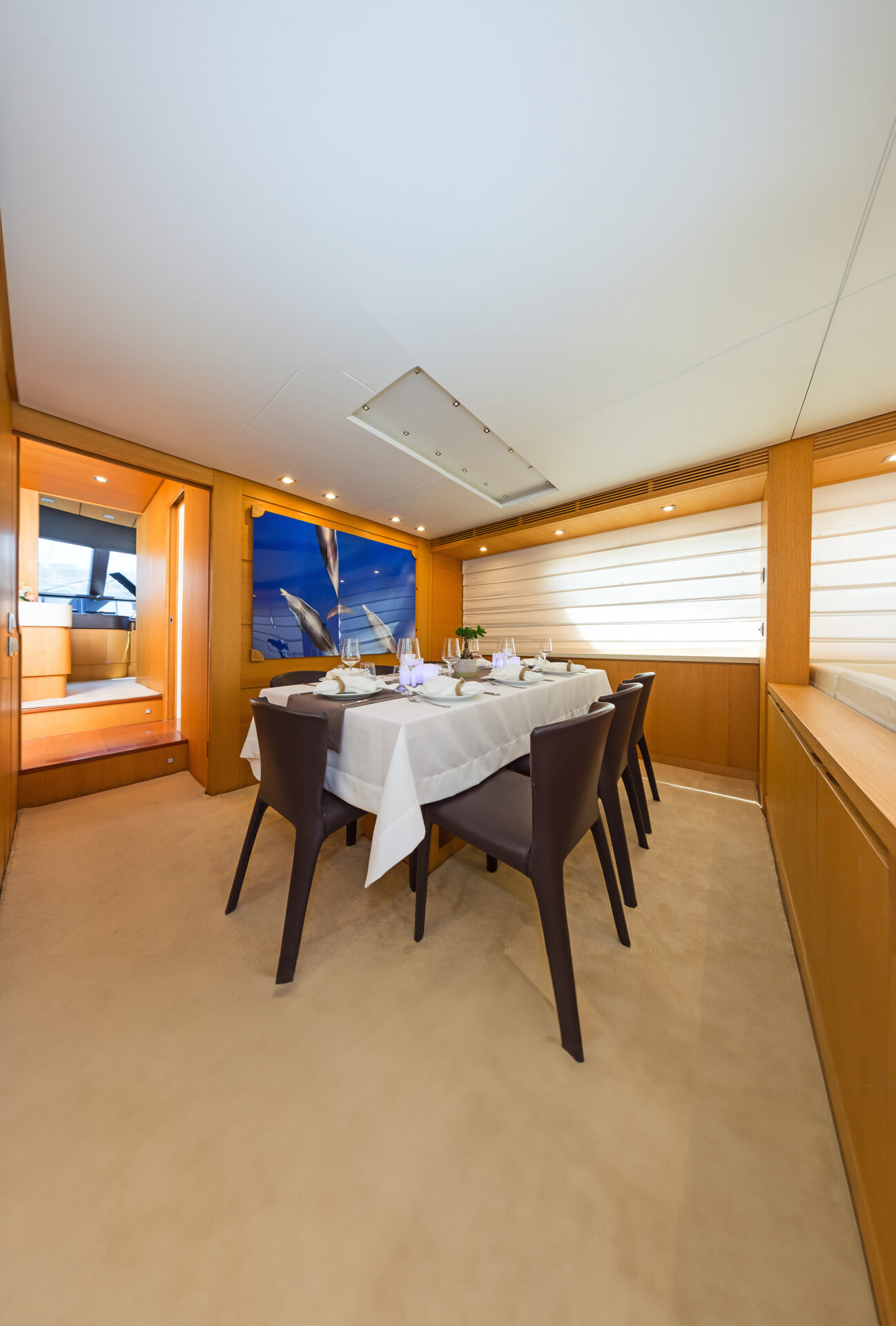 ALEGRIA, a Sanlorenzo built in 2007, is a refined example of Italian yacht craftsmanship, offering timeless design and solid performance. Throughout her 24 meters, she accommodates up to eight guests in a full-beam master cabin, a VIP cabin, and two twin cabins, all with en suite facilities. Her bright and elegant salon offers panoramic windows and a dedicated dining area.
